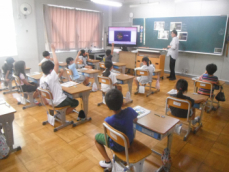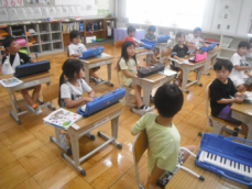 1年生は音楽の授業でした。『かたつむり』を、カスタネットをたたき元気に歌っていました。この後、鍵盤ハーモニカも演奏するようでした。