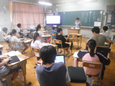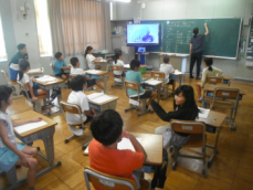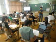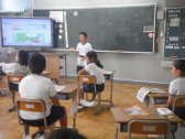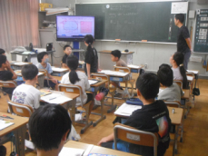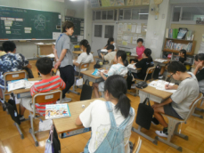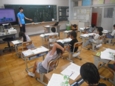 6年生はJackson先生の英語の授業でした。子供たちは夏休みの出来事を英語で紹介していました。