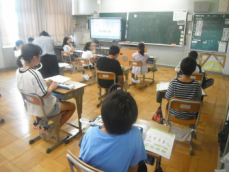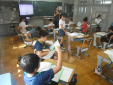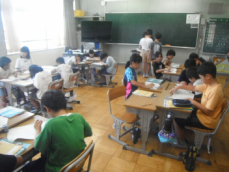 6年生は国語の授業でした。「文章を推敲しよう」という単元で、一人一人が例文を分かりやすくするために修正などを施していました。私のこの文章も推敲してもらいたいものです。