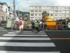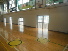 •  本校西側の道路拡張に伴い、運動場がちょっと狭くなります。運動場のコースロープを張りなおしていただきました。全4コースが区分けされています。