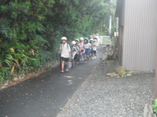 登校時、今日は南門で交通指導がてら子供たちの様子を見ていました。一列に並んで歩き、横断歩道を渡った後に運転手さんにお礼を言う姿が見られ、とっても嬉しく思いました。