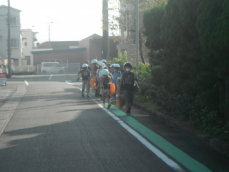 今朝の正門での登校の様子です。交通安全に気を付け、一列に並んで登校していました。先頭の6年生の子供たちが、時折、後ろを振り返って様子を確認している姿に感心しました。