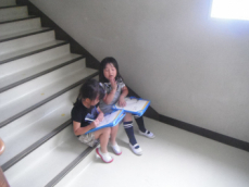 1年生も音楽の授業でした。学校内を歩き聞こえてくる音を言葉で表現していました。私が階段を歩く音は「トン・トン・トン」だそうです。