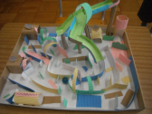 3時間目、4年生は図工の授業でした。「コロコロガーレ」が完成し、ビー玉を転がして出来栄えを見せ合っていました。色々な工夫がされた、面白い作品が多くみられました。