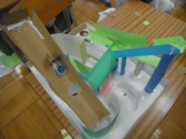 「コロコロガーレ」という教材を使用し、ビー玉が転がったり落ちたりするコースを作っていました。NHK、Eテレで放送している『ピタゴラスイッチ』を思い出しました。完成が楽しみです。