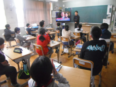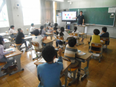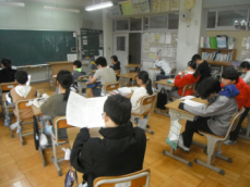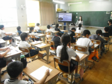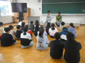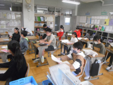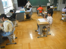 4年生は社会科の授業でした。滝沢に伝わる「放歌踊り」の保存会の方をお招きし、その歴史や意味、また御自身の御経験などをお話しいただいていました。放歌踊りの起源は鎌倉時代にまで遡ることができるそうです。滝沢には江戸時代に伝えられ、現在も8月のお盆の際に家庭を回っているのだそうです。子供たちは一生懸命にメモを取りながら、伝統の継承について考えているようでした。