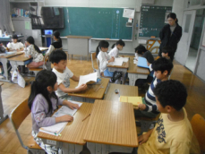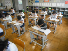 2年生は国語の授業でした。今までに学習した漢字を練習していました。「池」の「水」や「雲」の「上」などと丁寧に書いている子供たちがたくさんいました。
