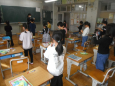 8時から「心の日」が各クラスで行われました。今日は「いやな気分をふき飛ばそう」と題して、リラックスの方法を一人一人が考えていました。