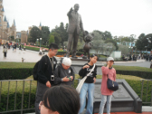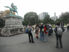 東京タワーを出て、バスで皇居へ向かいました。楠木正成像や二重橋、桜田門を見ることができました。現在の皇室を北朝の系統だとすると、正成公は南朝の功臣なので不思議な感じがします。その後は、東京駅から京葉線に乗ってディズニーランドに向かいました。