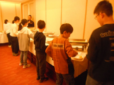 明けて7日(金)、午前7時から朝食でした。子供たちはみんなバイキング形式の朝ごはんに舌鼓をうっていました。