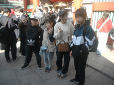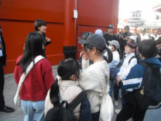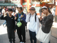 午前8時過ぎ、ホテルをバスで出発し浅草に向かいました。仲見世は外国からいらした方々と修学旅行生でごったがえしていました。グループごとに様々な店舗を回っていました。