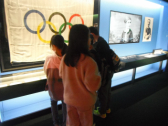 議事堂を後にして、最後の見学地オリンピックミュージアムに向かいました。オリンピックの始まりや意義、歴史を学んだり、競技で使用される砲丸や円盤に触れたりすることができました。オリンピックを「五輪」と表現したのは日本人記者だと聞いたことがあります。確かにオリンピックのことを、国外のプレスが Five rings と表現しているところを見たことはありません。