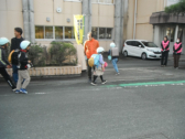 今朝は南門で子供たちを迎えることができました。新しくなった横断歩道と信号機に「おぉ」っと声をあげる姿も見られました。班長さんが先頭で班員を一列に並べて、安全に登校していました。