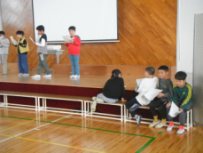 5時間目は、3、4年生が体育館に集まりました。3年生は「ももたろうとなかよし3年生」、ジェスチャーも大きな発表でした。