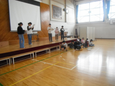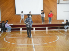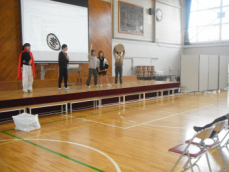 1年生は体育館で学習発表会の最後の練習をしていました。明日に向けて、せりふのスピードやタイミング、言う時の姿勢などについて、最終確認をしていました。明日が待ち遠しいものです。
