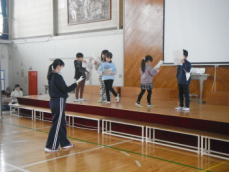 5年生は体育館で学習発表会の練習をしていました。実際にステージに上がり、せりふの声の大きさやジェスチャーを確認し合っていました。本番が楽しみです。