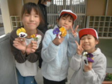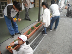 昼休みにも体育館で学習発表会の練習をしている子供の姿がありました。運営放送委員が開会式のリハーサルをしていました。また、体育館ピロティでは運動美化委員がパンジーの花を摘んだり水をあげたりしていました。