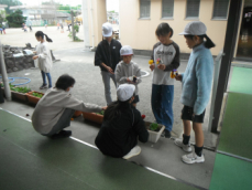 3時間目です。5年生は、理科室でミョウバンが水に溶ける量についての実験をしていました。ミョウバンをより多く水に溶かすためには、どうしたらよいか考えていました。「水を増やせば、とりあえずよさそうだ。」「水をあっためたらどう。」などの意見が聞かれました。