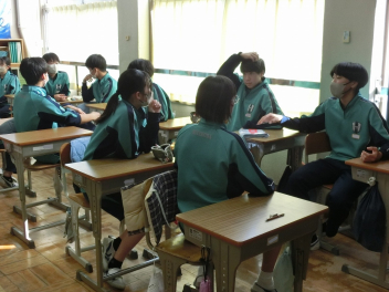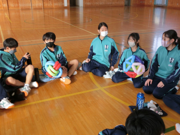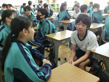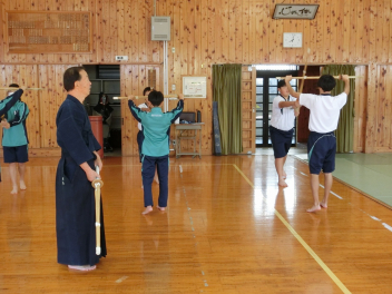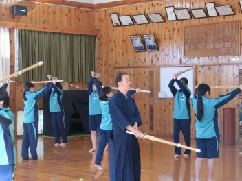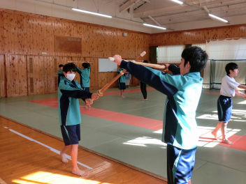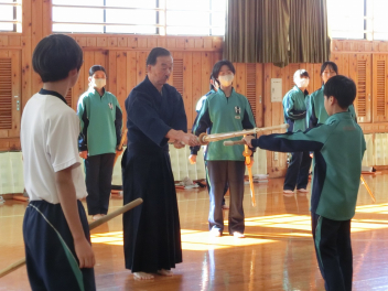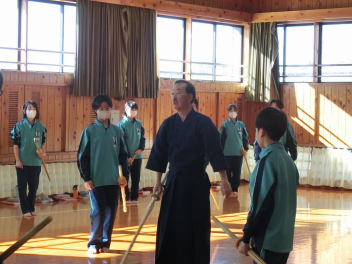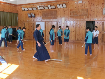 •  保健体育の授業では剣道が始まりました。剣道の授業では単なる技術の習得だけではなく、礼節を重んじ、礼儀正しさや忍耐力・集中力を養うことも目指しています。地域の福島さんにアドバイスをいただきながら剣道を通して心身を鍛えています。