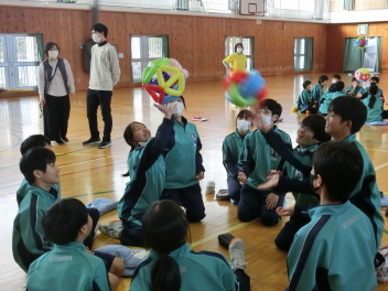 •  11月28日(金)に、81期生が都田協働センターの協力で杉山さんを講師に招き、バルーンアート講座を開催しました。今回は、バルーンのボールづくりを体験しました。この講座は3回予定しており、1月25日(日)に行われる協働センターまつりには代表生徒がバルーンアートの先生役で参加する予定です。
