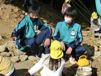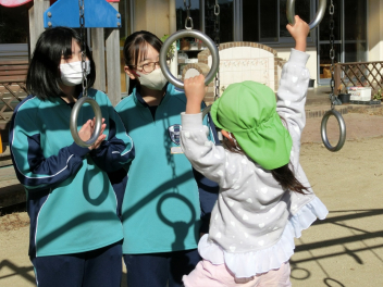 •  12月4日(木)は、学区にあるこども園「みどりのもり都田」で79期生が保育実習をさせていただきました。保育実習は家庭科の授業の一環で、実際に乳幼児とのかかわりを通して保育や乳幼児に対する知識や理解を深めるために行います。12月11日(木)、12月12日(金)にも79期生がこども園を訪れて実習を行う予定です。