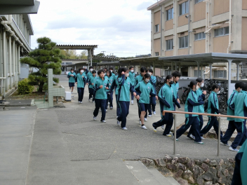 12月5日(金)に、避難訓練を行いました。今回は生徒への事前予告なしで、昼休みに地震が起こったことを想定しての訓練でした。天災はいつ起こるかわかりません。緊急時に正しく判断して行動できるように日頃から安心・安全に対する意識の向上を図ります。