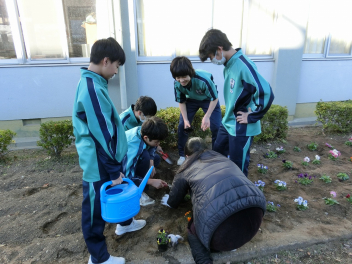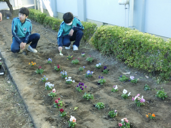 12月16日(火)の総合文化部の活動の様子です。この日は花壇に花の苗の植付けをしていました。寒い中でしたが、根を痛めないように大切に植替え作業を行っていました。生活空間に花があることで視界も心も明るくなります。総合文化部のみなさん、ありがとうございました。