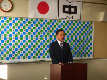 1月7日(水)は3学期始業式でした。始業式では、それぞれの学年の代表生徒が新しい年の抱負を力強く発表し、都田中学校にも活気が戻りました。始業式終了後には、今年度発足した交通安全を推進する生徒の有志グループから、安全意識高揚の呼びかけもありました。都田中は3学期もがんばります!
