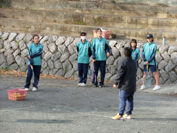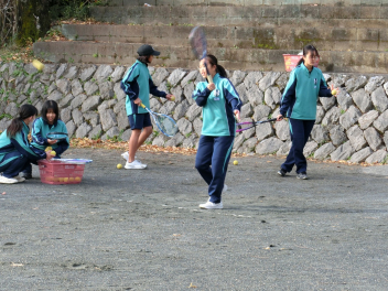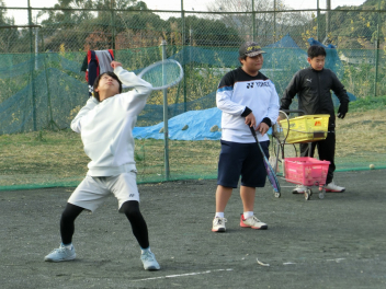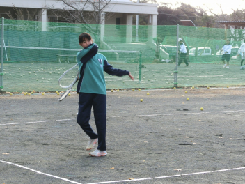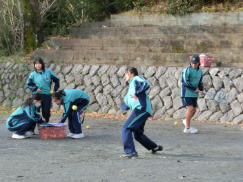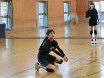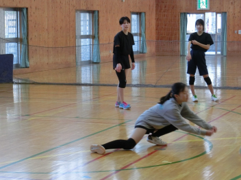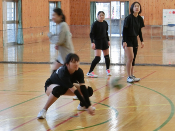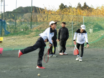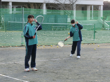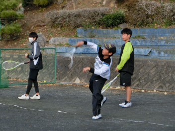 冬休みの都田中の様子です。体育館ではバレーボール部が、テニスコートでは男女のソフトテニス部が活動をしていました。教員も一緒になって練習に参加しており、生徒の技能向上を支援していました。
