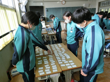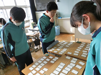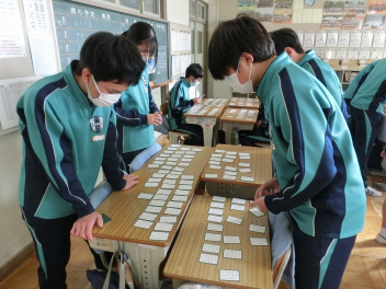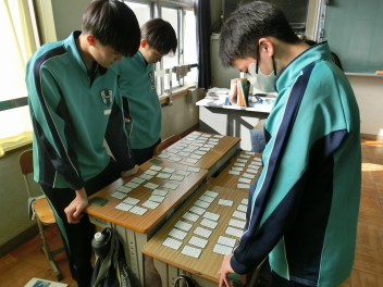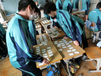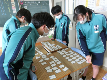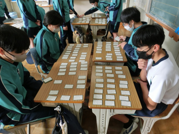 •  79期生の国語の授業では百人一首を行いました。百人一首は日本の伝統文化への理解が深まるだけでなく、音読やリズム感の心地良さから日本語の美しさを再確認できます。語彙力だけでなく、記憶力、集中力、判断力などを総合的に身に付けることができ、生徒は集中して楽しそうに取り組んでいました。