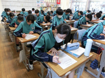 11月10日(月)に、各学級で天白祭の振り返りを行いました。11月7日(金)の天白祭はもちろん、それまでの過程を振り返り、数か月間にわたる貴重な体験を自己の学びにつなげることができました。改めて振り返るとあっという間の時間でしたが、天白祭を通して、個人として集団として大きく成長できたのではないでしょうか。