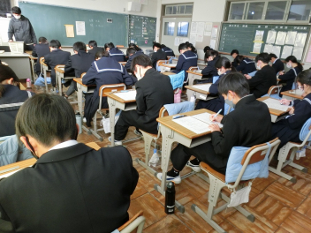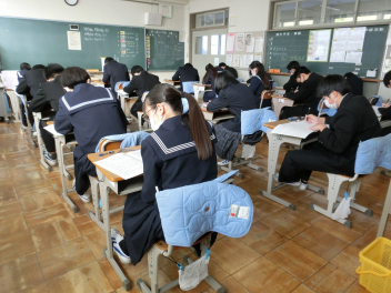 2月12日(木)、13日(金)は、今年度最後の定期テストでした。どの教室でも緊張感が漂う中、解答用紙に解答を書き込む音が響いていました。テスト結果をしっかり分析し、自分の学習を振り返り、今年度の学習内容は今年度のうちにしっかりと身に付けて来年度を迎えられるようにしてください。