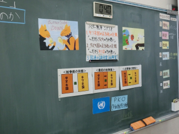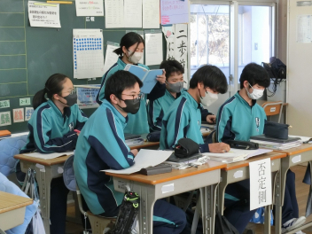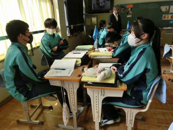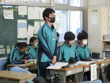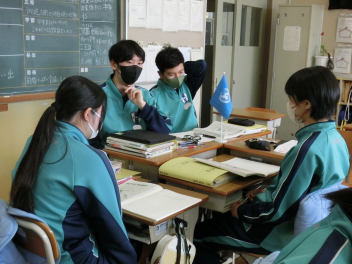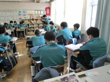 •  2月18日(水)の79期生の社会科授業の様子です。キツネ国とタヌキ国の紛争について国連の立場に立って解決策を考えました。グループによって異なる解決策が発表され、様々な考え方があることを実感するとともに、紛争解決の難しさを知ることができました。