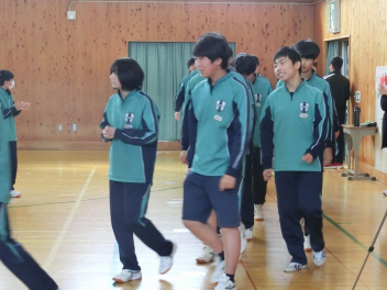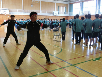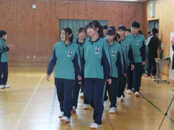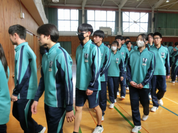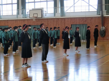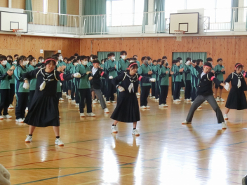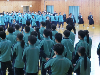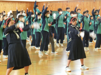 3月5日(木)の昼休みの体育館の様子です。この日も、9日(月)に行う3年生を送る会に向けて、80期生と81期生の応援団が79期生に贈るエールの練習をしていました。81期生の応援団もしっかりと動きを覚え、声も大きくなっていました。80期生、81期生のみなさん、感謝の思いを熱い応援にこめて79期生に届けましょう。