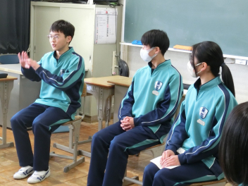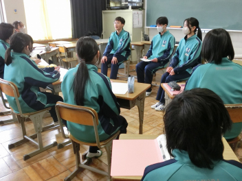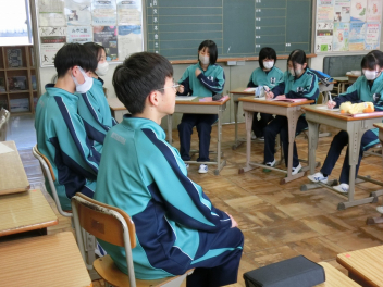 •  3月10日(火)に、81期生の野外活動実行委員が、79期生の生徒会役員からリーダーとしての心構えを聞きました。「生徒が主役の都田中」では行事を生徒主体で運営し、行事を通して個人と集団が成長していきます。先輩からのアドバイスを受け、野外活動を通して81期生が大きく成長できるように、野外活動実行委員みなさん、よろしくお願いします。