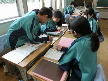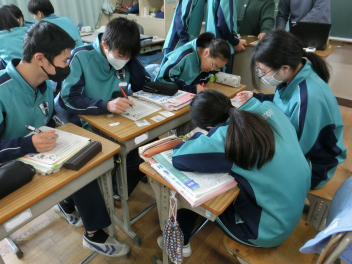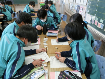 •  1月16日(金)、80期生の授業の様子です。国語科の故事成語の学習で、場面を設定して演じたり物語をつくったりして、どんな故事成語を表しているのかをクイズ形式で楽しく学んでいました。発表者の活躍のおかげで様々な故事成語が身近なものとなりました。これからの生活で日常会話の中にも使われることと思います。