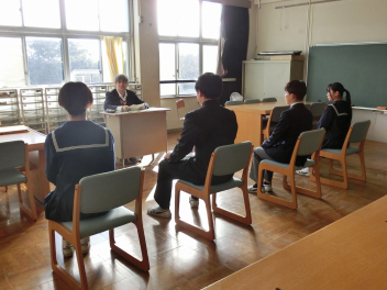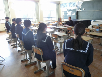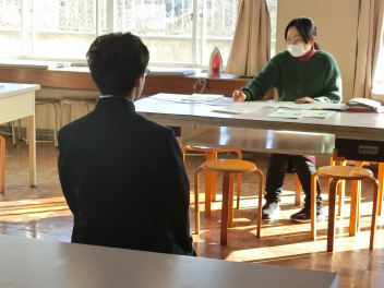•  79期生の多くは面接試験を控えており、学力検査同様に準備を進めています。進路決定に向けての面接練習を進める中で、自分の良さや将来について再確認できる場ともなっています。社会で通用する社会人としての言葉遣いやマナーを身に付け、自信をもって自分を表現できると良いですね。