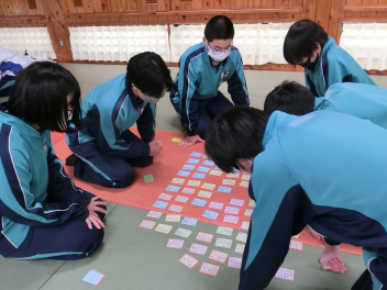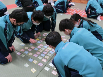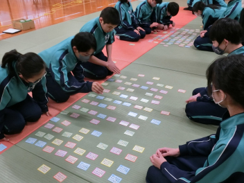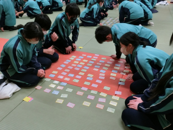 •  1月23日(金)に、80期生が百人一首大会を行いました。シーンと静まり返った雰囲気の中で、五・七・五・七・七のリズムが耳に心地良く響きました。漫画「ちはやふる」のヒットをきっかけに競技かるたの人口も増加したようです。80期生も日本の伝統的な遊びを味わい楽しむことができました。