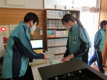 3月4日(水)の昼休みの図書室の様子です。本の返却に来たり借りる本を選んだりする生徒がたくさんいました。本との出会いが人生を変えることもあります。自分にとっての運命の1冊やいつまでも心に残る1冊と出会って欲しいと思います。