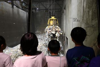 もえるごみ、もえないごみの処理の過程を見学しました。また、エコを実現させるためにどうしたらよいのか、家庭ではどのようなことができるのかについて教えていただきました