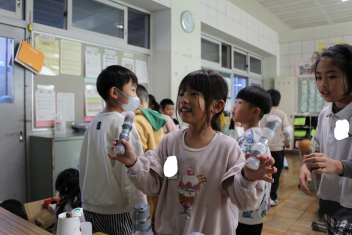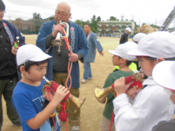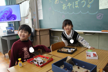 • 生活科の時間に、秋のものを使って作ったおもちゃを、1年生みんなで遊びました