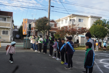 11月11日(火)は市内一斉の「ひとりひとりにいい声掛けデー」があり、市内各校や子供たちの通学路等で地域の大人から子供たちへのあいさつ運動が行われましたsmiley