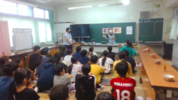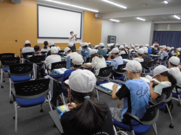 水分補給に適している飲料についてや、冷たいものの摂りすぎ注意など、とてもわかりやすく説明してもらいました。これから夏休みを迎える子供たちに向けて、とても勉強になるお話でした。