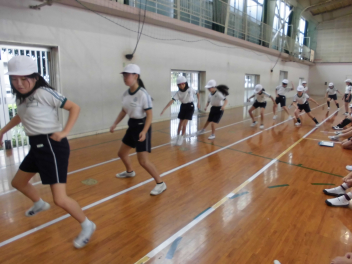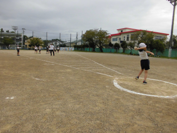 体育館では反復横跳び、上体起こし、立ち幅跳び 運動場では50m走、ボール投げを行いました