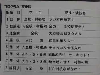 そのため、お子さんの出場時刻も変更になります。なお、状況によっては、途中で打ち切り、残りの種目を来週の平日に実施する場合もあります。