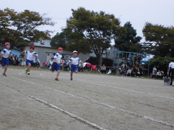 ラジオ体操で準備体操をし、すぐに、徒競走です。