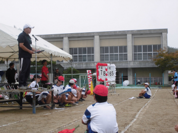 双方の団長へ、PTA会長、校長先生からトロフィーをそれぞれ渡されました。