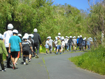 地震が発生した後、津波警報が出たことを想定して、高台へ避難する訓練を行いました。