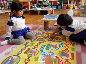 年少児もすごろく遊びに挑戦です。