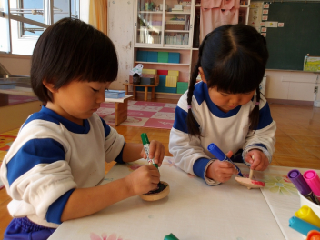 年少児もコマの色塗りをしました。